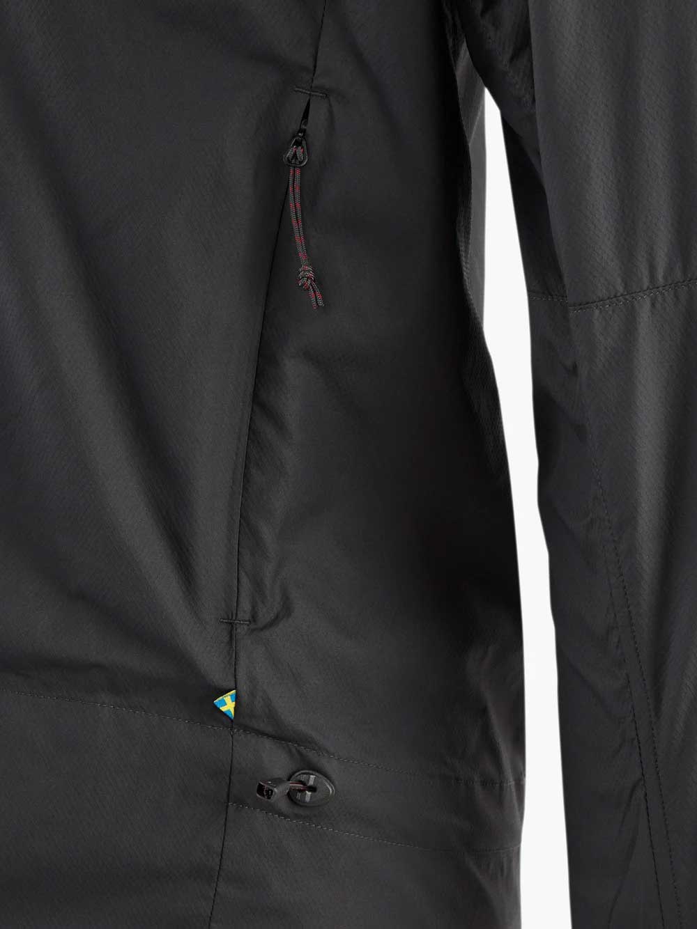 La giacca Nal da uomo di Klättermusen è un windbreaker leggero e funzionale, ideale per attività ad alta intensità che richiedono massima libertà di movimento. Realizzata in Ultramid® Bio-Mass Balanced Polyamide, offre resistenza al vento e traspirabilità. Il design senza cappuccio riduce il peso e migliora la compressibilità, mentre il collo alto fornisce protezione solare. Le tasche frontali, posizionate in alto per l`accesso durante l`uso dell`imbracatura, sono dotate di zip nascoste per evitare abrasioni. Le maniche presentano polsini elastici in mesh per una ventilazione ottimale, e l`orlo inferiore è regolabile per una vestibilità personalizzata.