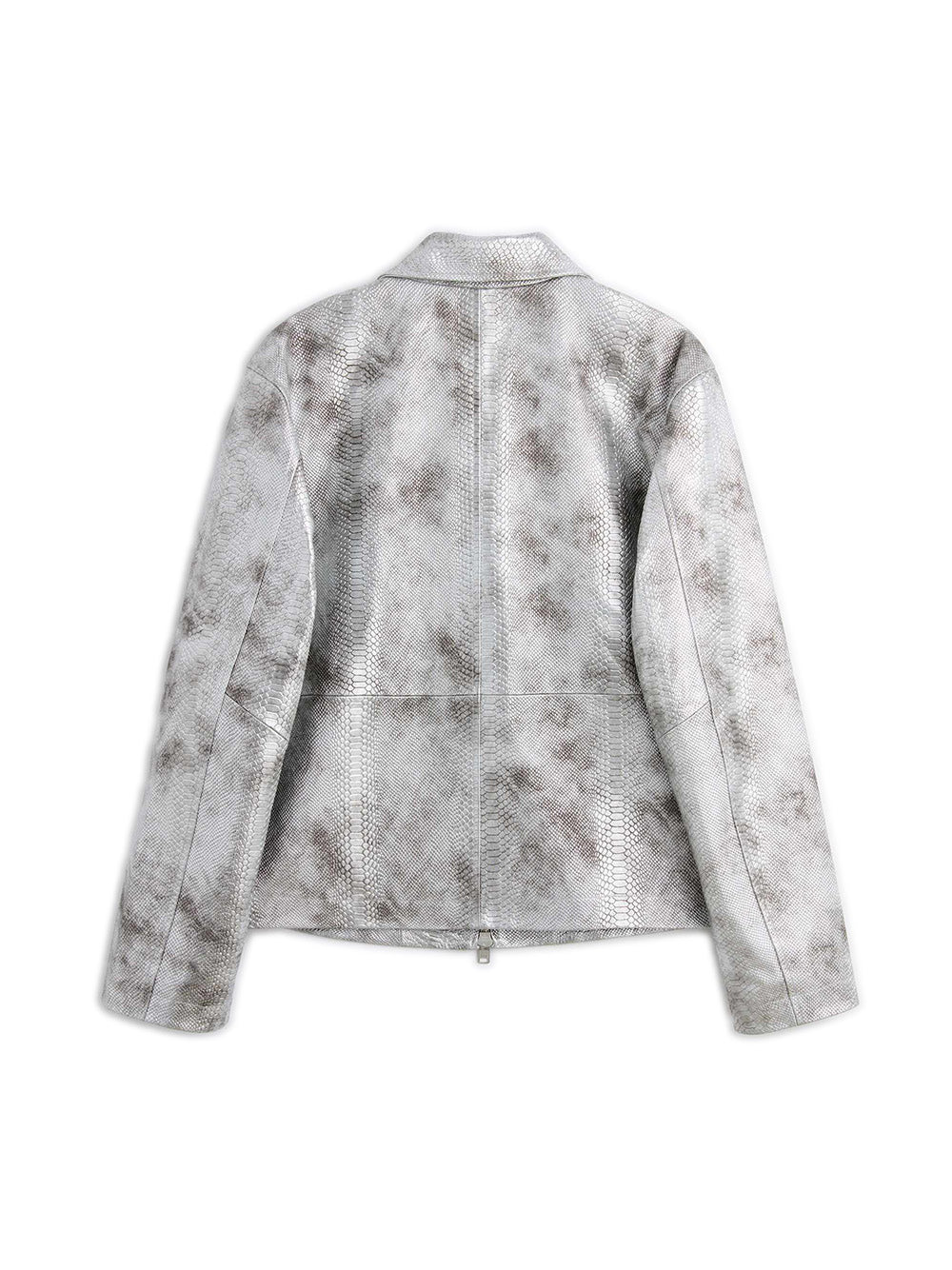 La giacca corta "Short Leather Jacket" di Sunflower è realizzata in morbida pelle. Presenta un colletto classico "spread", chiusura frontale con zip a doppio cursore, due tasche laterali a filetto e una tasca interna, tutte rifinite in modo essenziale. La fodera interna in satin garantisce comfort e leggerezza. La silhouette corta & minimal è perfetta per un look contemporaneo e versatile, ideale da abbinare a denim o pantaloni tailor-made